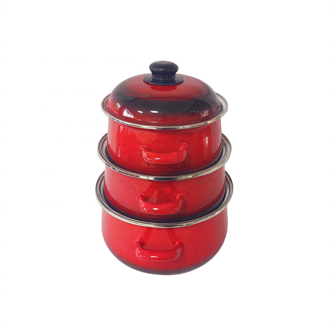 ست سهتایی یعنی هر قابلمه برای کاری مناسبه! از پخت برنج 🍚 گرفته تا خورشت 🍖 و سوپ 🥣 — دیگه لازم نیست مدام سراغ یه قابلمه بری!